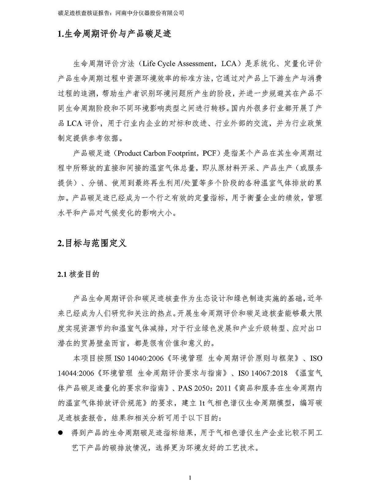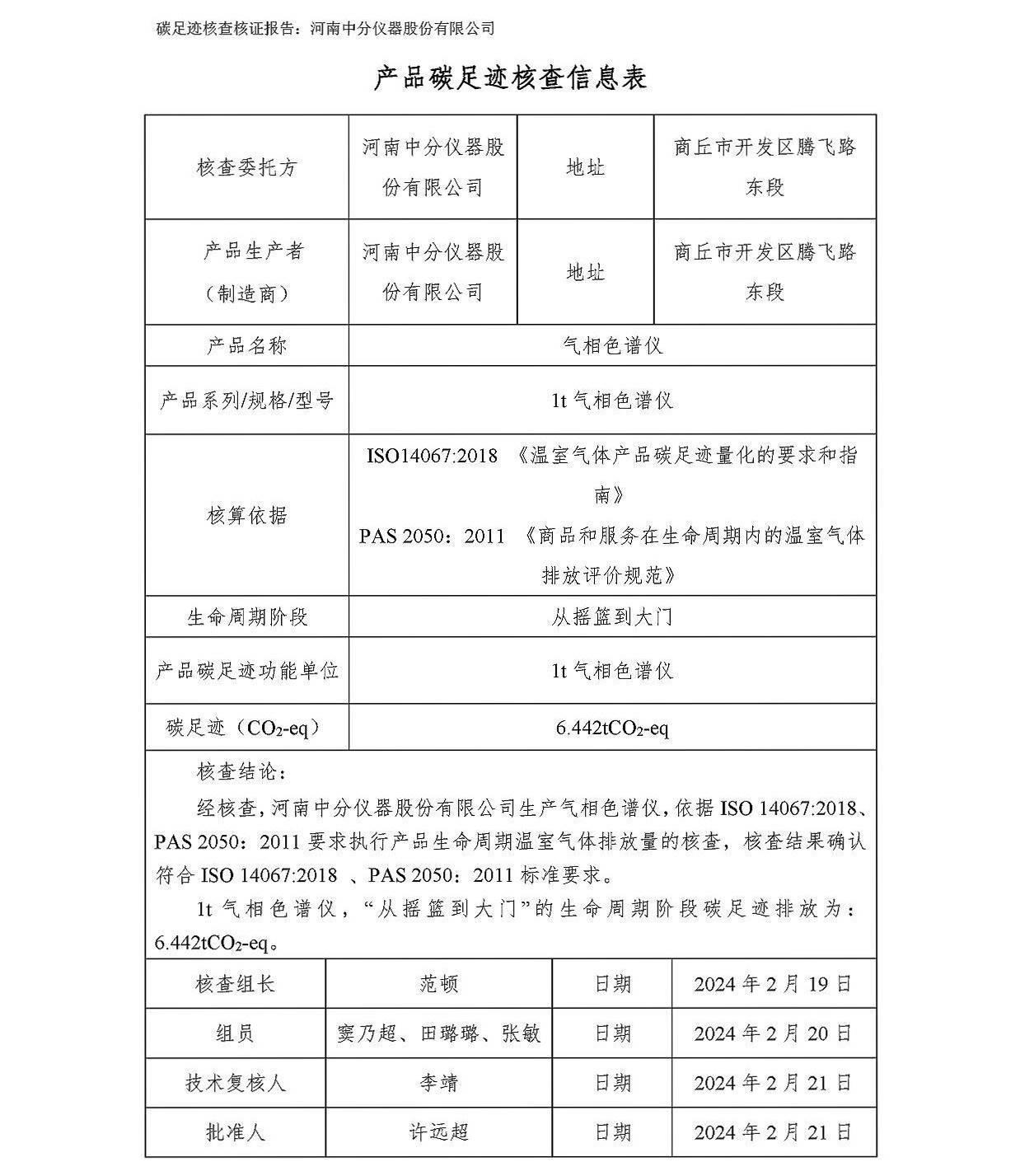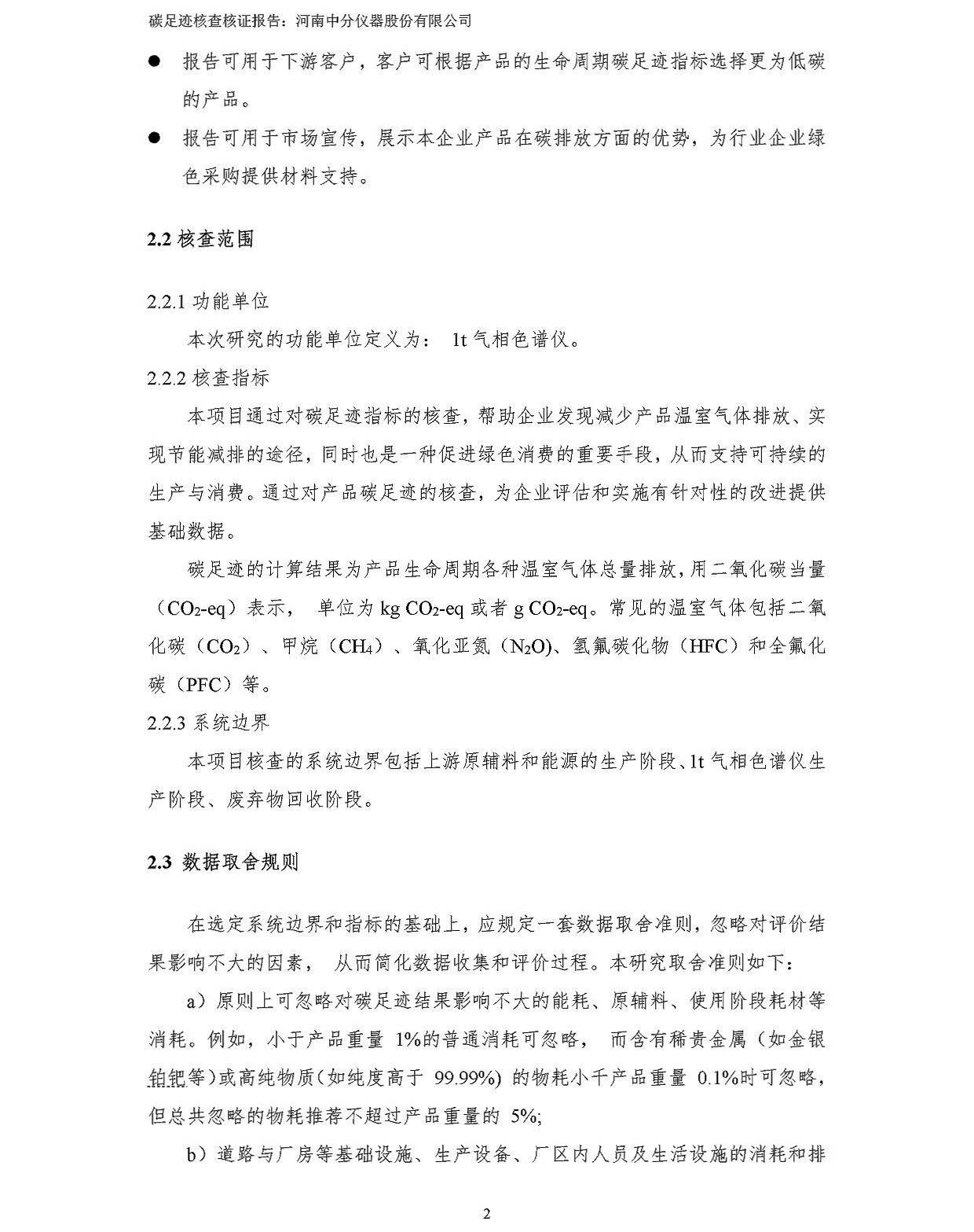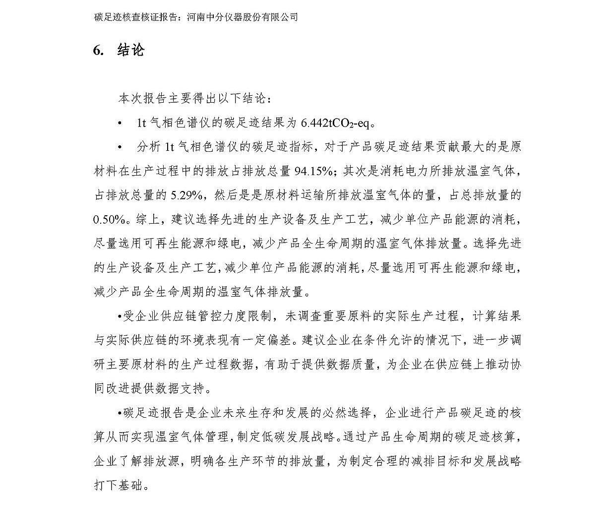 河南中分儀器股份有限公司2023年產品碳足跡核查報告