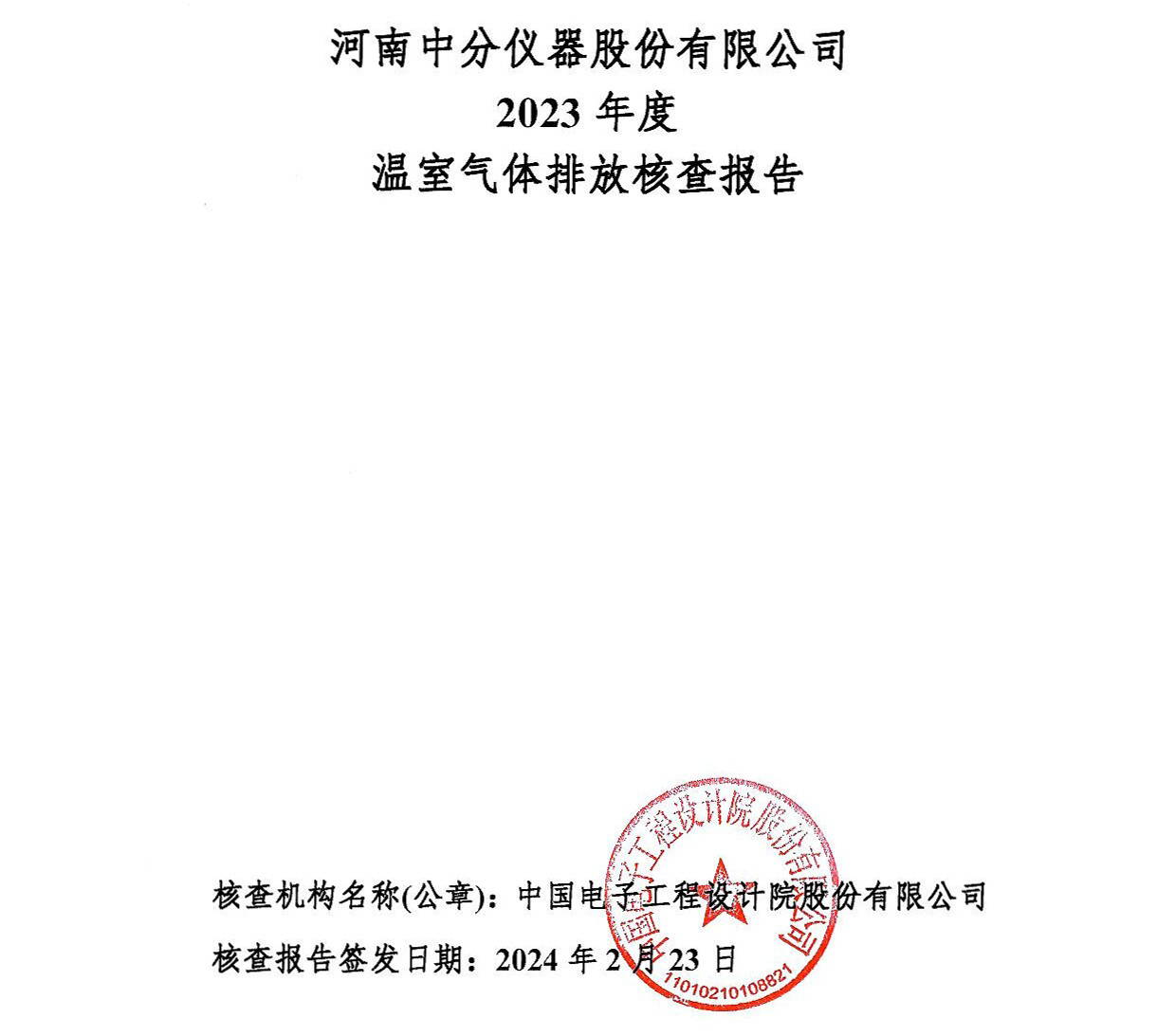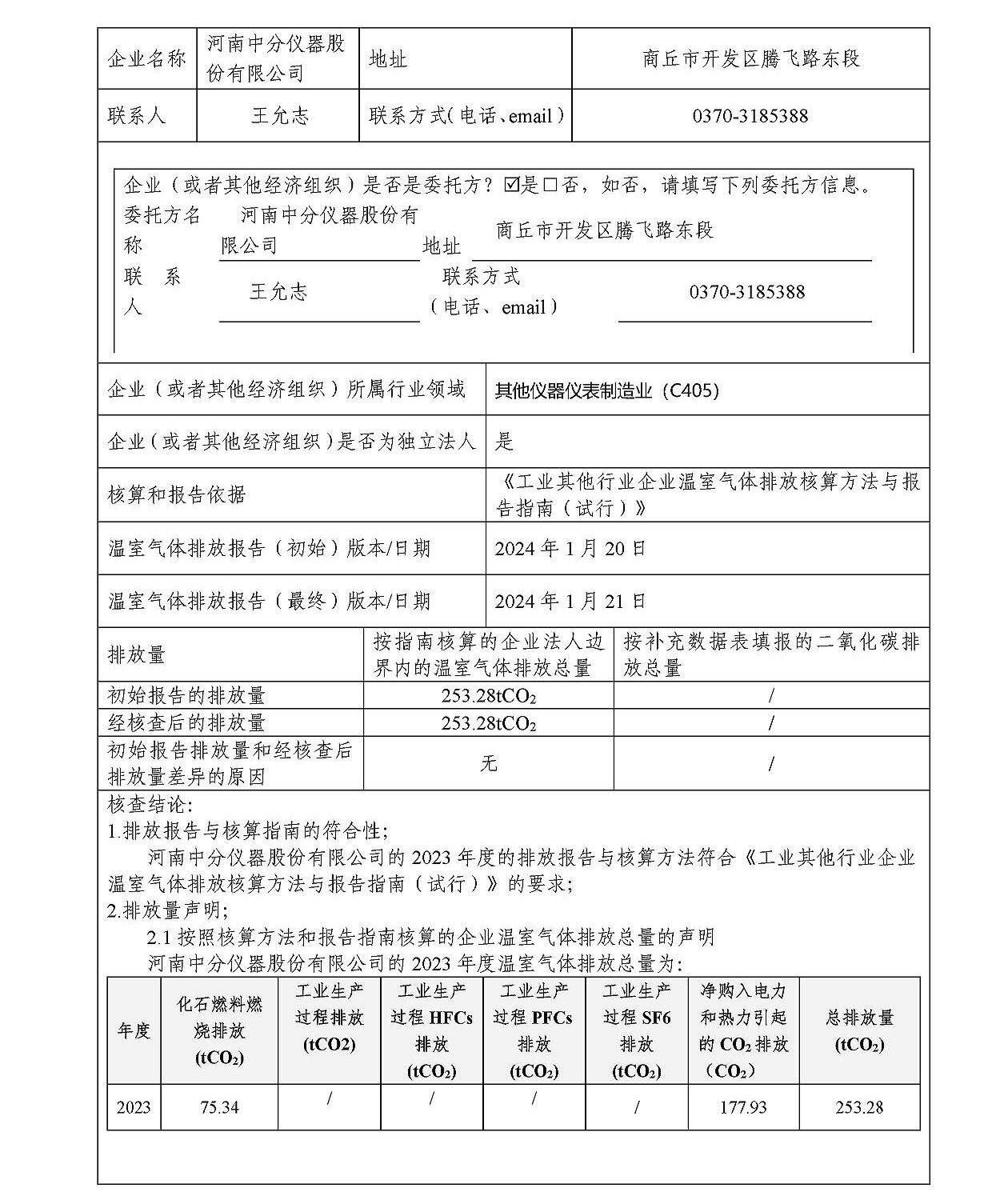 河南中分儀器股份有限公司2023年溫室氣體排放核查報告